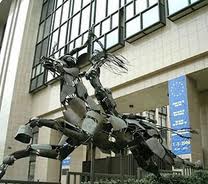 Скульптура женщины на звере - основное украшение территории рядом со зданием Совета Европы в Брюсселе. Происхождение скульптуры можно легко проследить. Она изображает греческий миф о "похищении Европы" - именно в честь этой женщины был назван Европейский континент! Тот же образ женщины на звере упоминается и в Библии, в книге Откровений, главы 13 и 17. Также зверь упоминается и в Ветхом Завете в 7 главе книги пророка Даниила. В греческой мифологии, первоисточнике этого символа, есть история о Зевсе, отце богов, рассказывающая о том, что он подсматривал за прекрасной Европой, которая находилась одна на Финикийском пляже (кстати, сегодня это - часть Израиля) и воспылал к ней страстью. Он превратился в быка ослепительной белизны с рогами в форме полумесяца и лег у ее ног. Европа села ему на спину, и он увлек ее в морские пучины, а затем изнасиловал. Женщина зачала сына и после смерти получила божественные почести и вошла в сонм богов, как Царица Небесная, а бык растворился в небесном созвездии, известном теперь как Телец.